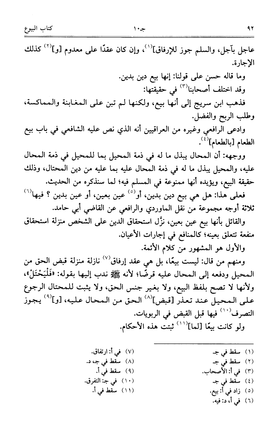 ووجهه: أن المحال يبذل ما له في ذمة المحيل بما للمحل في ذمة المحال عليه، والمحيل يبذل ما له في ذمة المحال عليه بما عليه من دين المحتال، وذلك حقيقة البيع، ويؤيده أنها ممنوعة من المسلم فيه؛ لما سنذكره من الحديث.