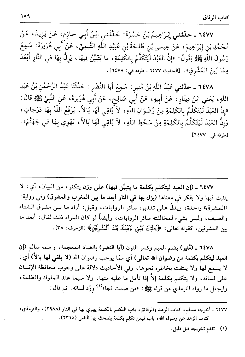 6478 - حَدَّثَنِى عَبْدُ اللَّهِ بْنُ مُنِيرٍ سَمِعَ أَبَا النَّضْرِ حَدَّثَنَا عَبْدُ الرَّحْمَنِ بْنُ عَبْدِ اللَّهِ - يَعْنِى ابْنَ دِينَارٍ - عَنْ أَبِيهِ عَنْ أَبِى صَالِحٍ عَنْ أَبِى هُرَيْرَةَ عَنِ النَّبِيِّ - صلى الله عليه وسلم - قَالَ «إِنَّ الْعَبْدَ لَيَتَكَلَّمُ بِالْكَلِمَةِ مِنْ رِضْوَانِ اللَّهِ لاَ يُلْقِى لَهَا بَالاً، يَرْفَعُ اللَّهُ بِهَا دَرَجَاتٍ، وَإِنَّ الْعَبْدَ لَيَتَكَلَّمُ بِالْكَلِمَةِ مِنْ سَخَطِ اللَّهِ لاَ يُلْقِى لَهَا بَالاً يَهْوِى بِهَا فِي جَهَنَّمَ». طرفه 6477