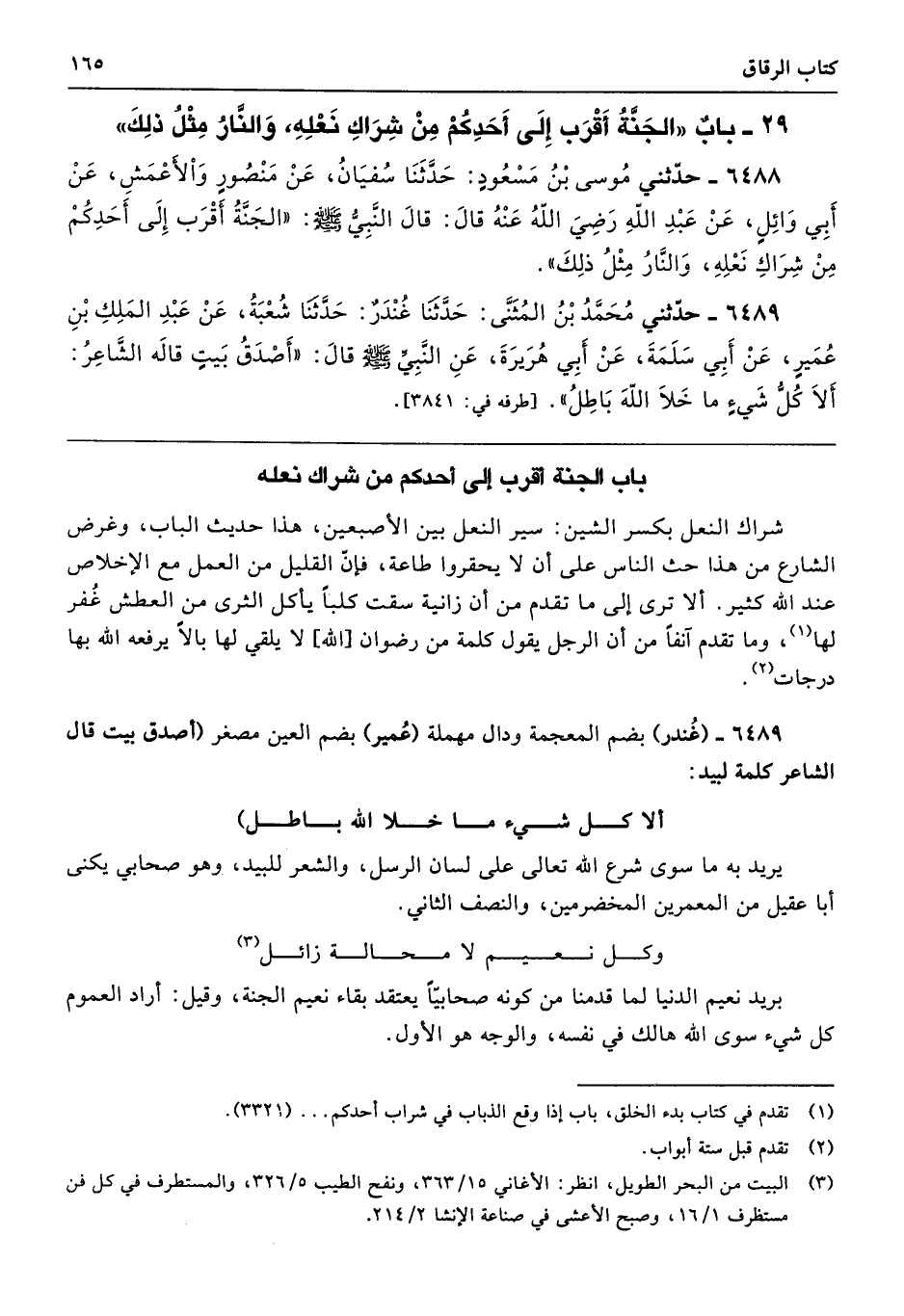 29 - باب «الْجَنَّةُ أَقْرَبُ إِلَى أَحَدِكُمْ مِنْ شِرَاكِ نَعْلِهِ، وَالنَّارُ مِثْلُ ذَلِكَ»