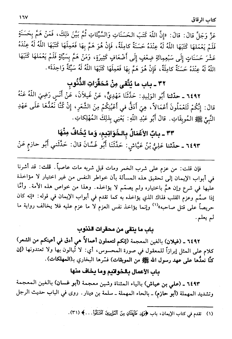 6493 - (علي بن عياش) بالياء المثناة وشين معجمة (أبو غسان) بالغين المعجمة وتشديد المهملة (أبو حازم) -بالحاء المهملة- سلمة بن دينار. روى في الباب حديث الرجل