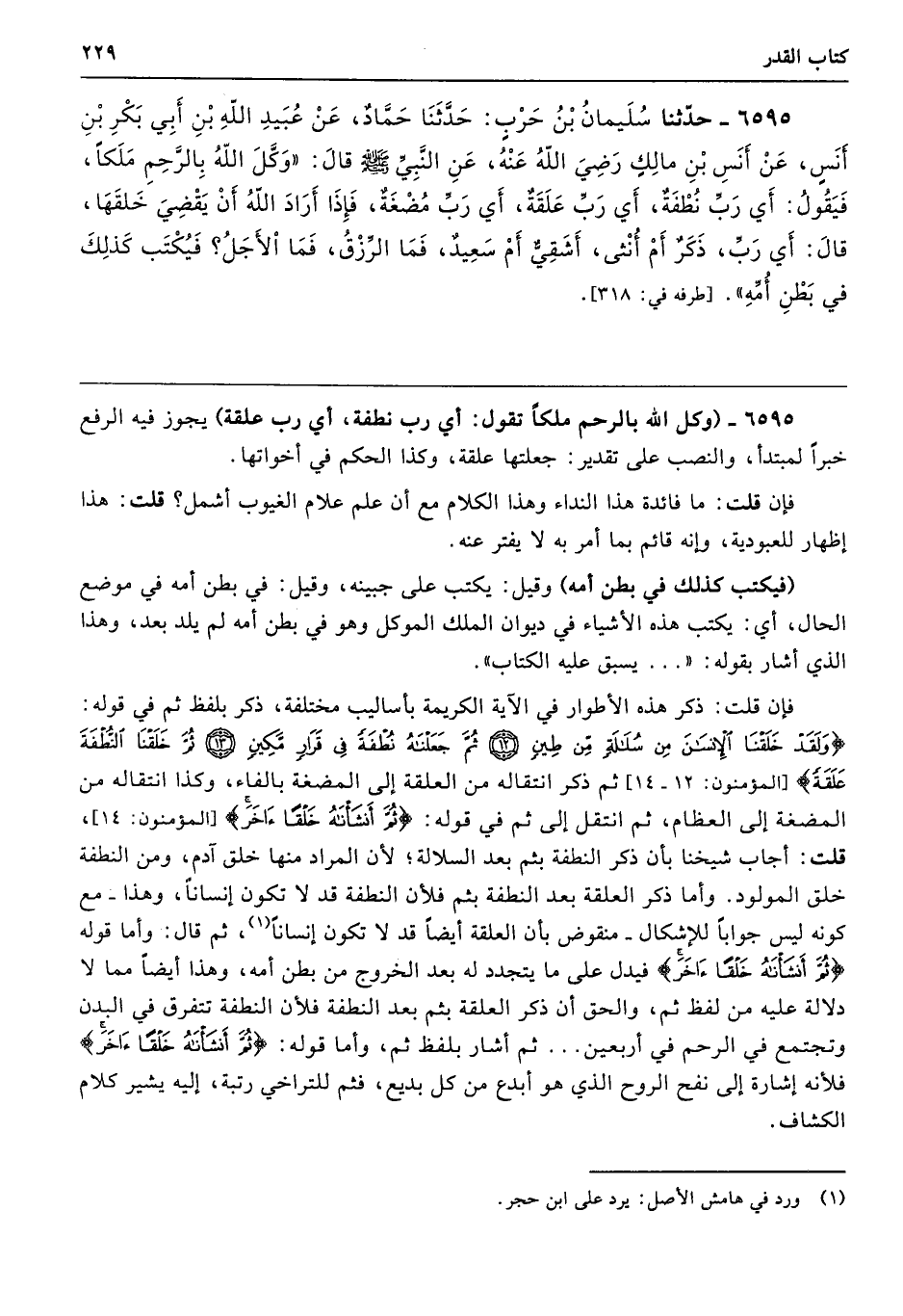 6595 - (وكل الله بالرحم ملكًا تقول: أي رب نطفة، أي رب علقة) يجوز فيه الرفع خبرًا لمبتدأ، والنصب على تقدير: جعلتها علقة، وكذا الحكم في أخواتها.