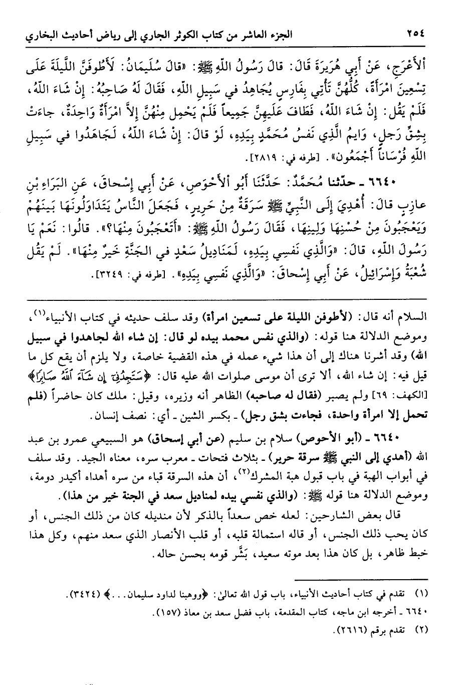 6640 - حَدَّثَنَا مُحَمَّدٌ حَدَّثَنَا أَبُو الأَحْوَصِ عَنْ أَبِى إِسْحَاقَ عَنِ الْبَرَاءِ بْنِ عَازِبٍ قَالَ أُهْدِىَ إِلَى النَّبِيِّ - صلى الله عليه وسلم - سَرَقَةٌ مِنْ حَرِيرٍ، فَجَعَلَ النَّاسُ يَتَدَاوَلُونَهَا بَيْنَهُمْ، وَيَعْجَبُونَ مِنْ حُسْنِهَا وَلِينِهَا، فَقَالَ رَسُولُ اللَّهِ - صلى الله عليه وسلم - «أَتَعْجَبُونَ مِنْهَا». قَالُوا نَعَمْ يَا رَسُولَ اللَّهِ. قَالَ «وَالَّذِى نَفْسِى بِيَدِهِ لَمَنَادِيلُ سَعْدٍ فِي الْجَنَّةِ خَيْرٌ مِنْهَا». لَمْ يَقُلْ شُعْبَةُ وَإِسْرَائِيلُ عَنْ أَبِى إِسْحَاقَ «وَالَّذِى نَفْسِى بِيَدِهِ». طرفه 3249