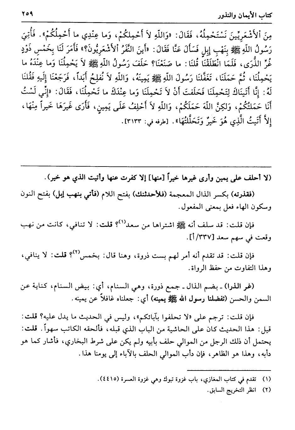 (فقذرته) بكسر الذال المعجمة (فلأحدثنك) بفتح اللام (فأتي بنهب إبل) بفتح النون وسكون الهاء فعل بمعنى المفعول.
