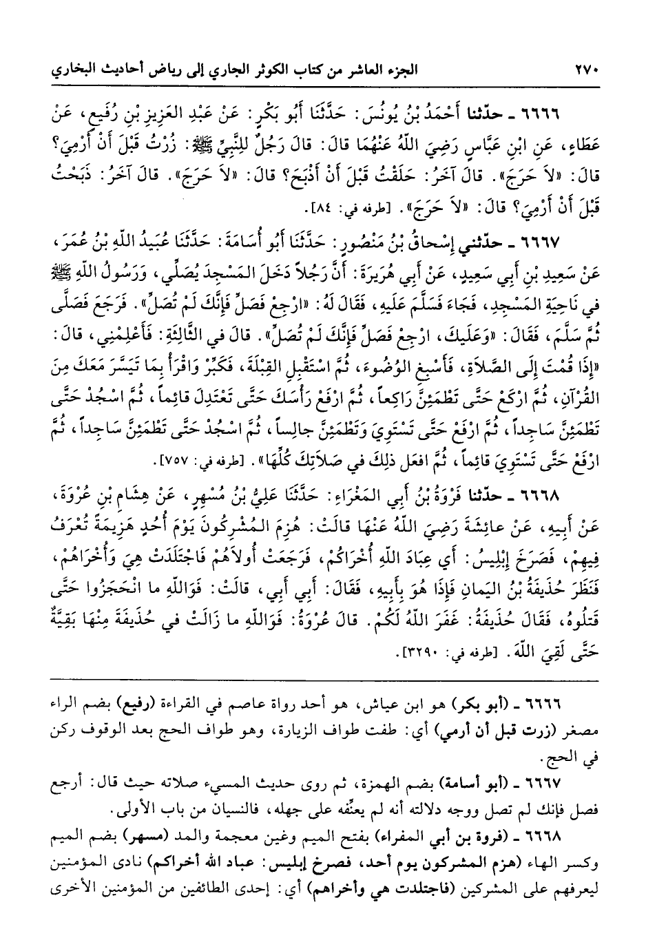 6667 - (أبو أسامة) بضم الهمزة، ثم روى حديث المسيء صلاته حيث قال: أرجع فصل فإنك لم تصل ووجه دلالته أنه لم يعنِّفه على جهله، فالنسيان من باب الأولى.