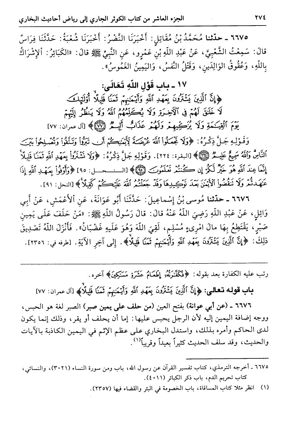 باب قوله تعالى: {إِنَّ الَّذِينَ يَشْتَرُونَ بِعَهْدِ اللَّهِ وَأَيْمَانِهِمْ ثَمَنًا قَلِيلًا} [آل عمران: 77]