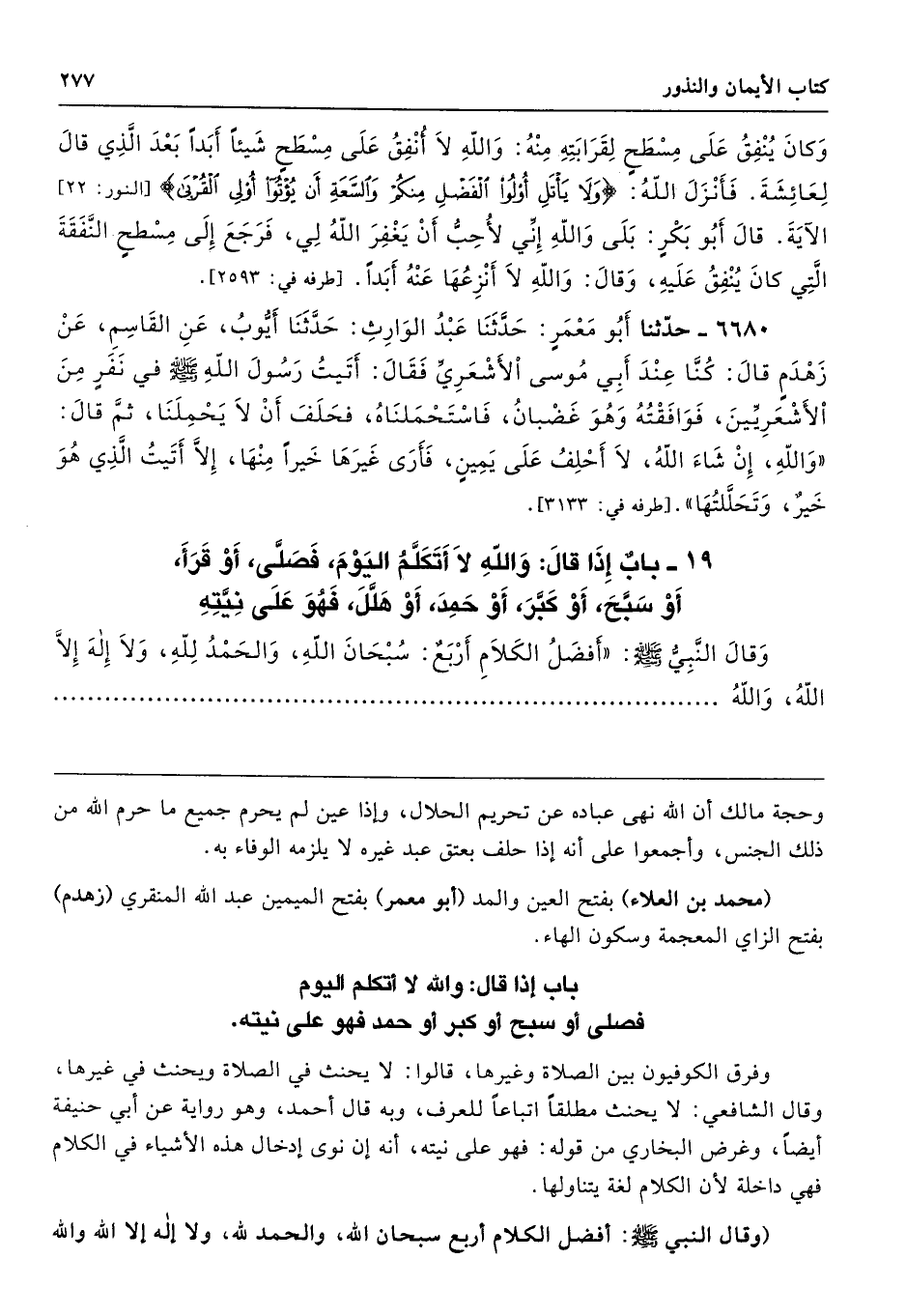 19 - باب إِذَا قَالَ وَاللَّهِ لاَ أَتَكَلَّمُ الْيَوْمَ. فَصَلَّى أَوْ قَرَأَ أَوْ سَبَّحَ أَوْ كَبَّرَ أَوْ حَمِدَ أَوْ هَلَّلَ، فَهْوَ عَلَى نِيَّتِهِ