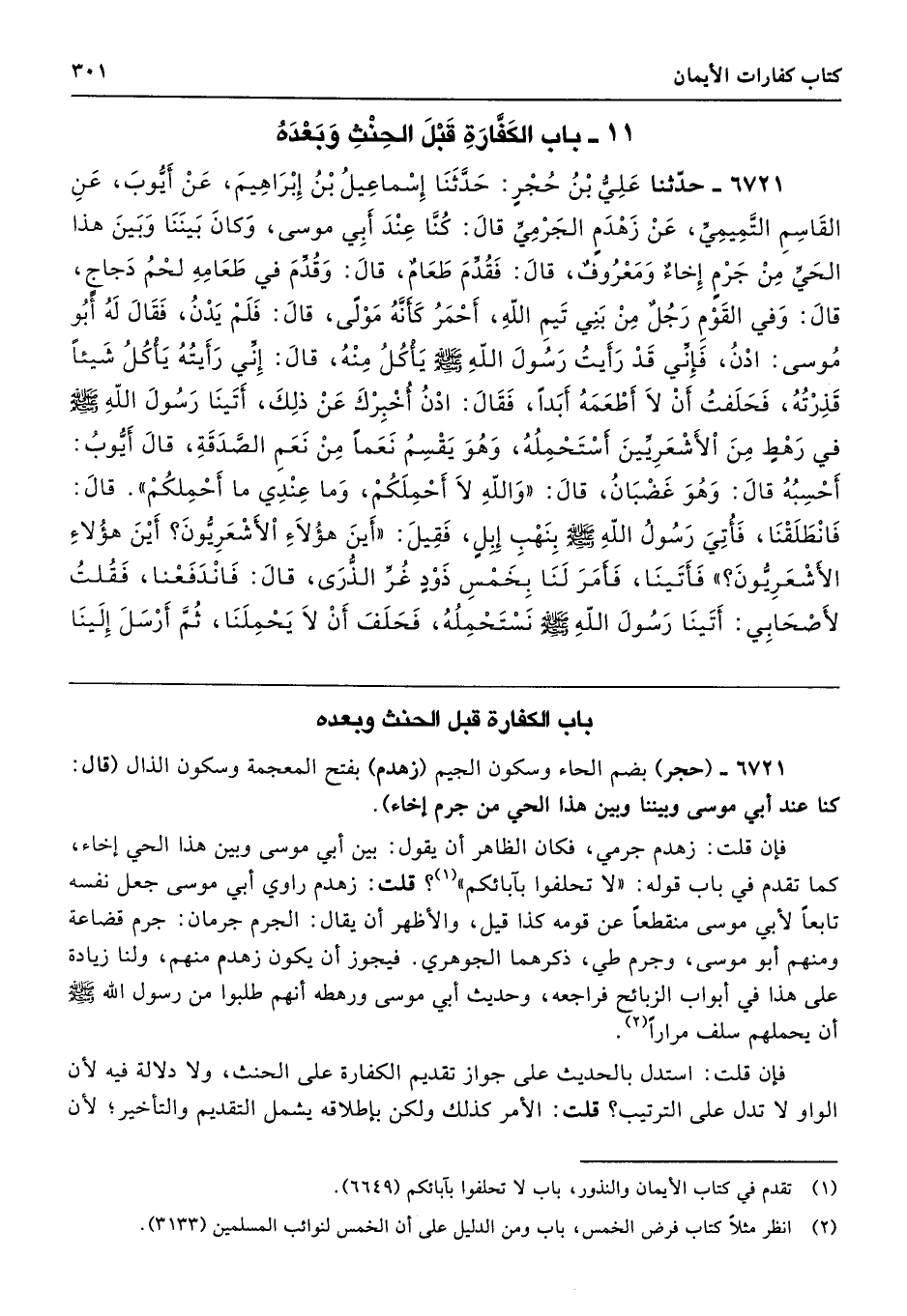 6721 - (حجر) بضم الحاء وسكون الجيم (زهدم) بفتح المعجمة وسكون الذال (قال: كنا عند أبي موسى وبيننا وبين هذا الحي من جرم إخاء).