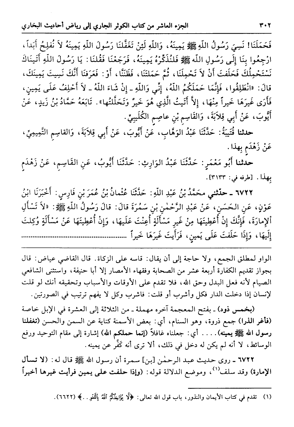 6722 - روى حديث عبد الرحمن [بن] سمرة أن رسول الله - صلى الله عليه وسلم - قال له: (لا تسأل الإمارة) وقد سلف، وموضع الدلالة قوله: (وإذا حلفت على يمين فرأيت غيرها أخيرًا
