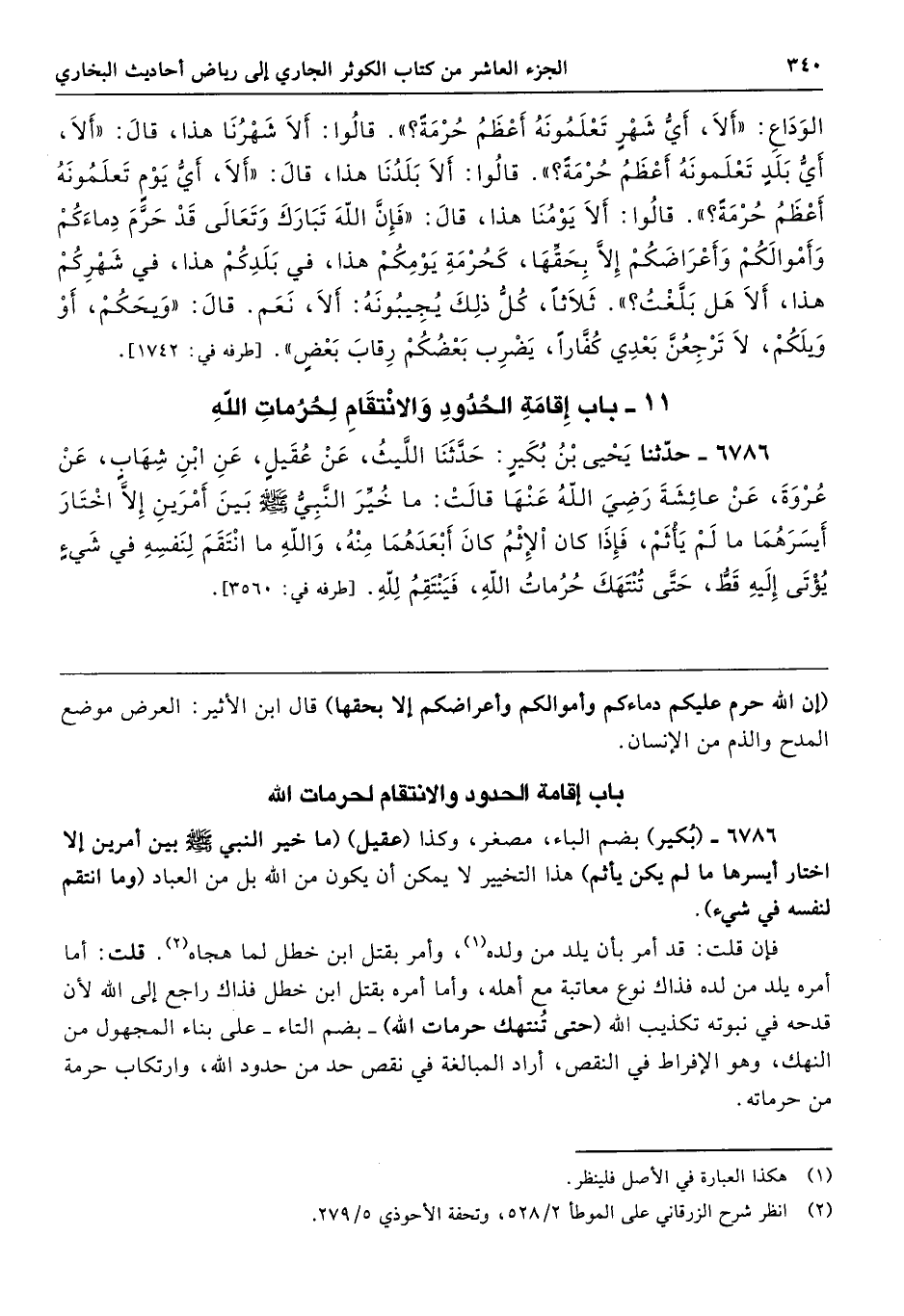 11 - باب إِقَامَةِ الْحُدُودِ وَالاِنْتِقَامِ لِحُرُمَاتِ اللَّهِ