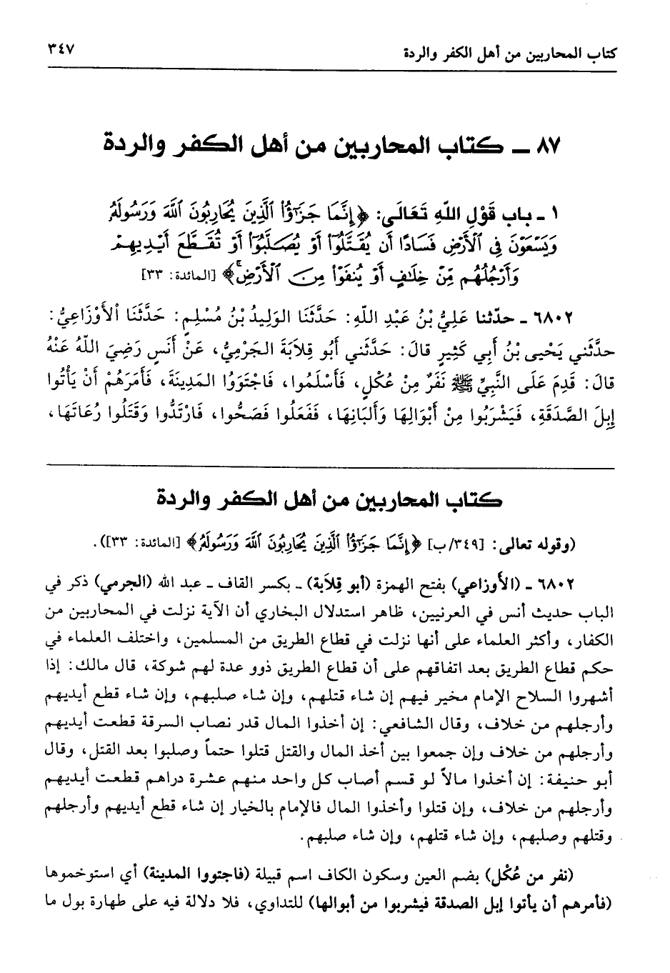 87 - كتاب المحاربين من أهل الكفر والردة