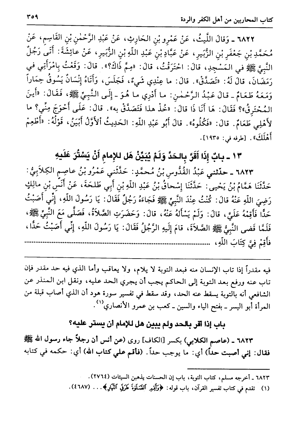 13 - باب إِذَا أَقَرَّ بِالْحَدِّ وَلَمْ يُبَيِّنْ، هَلْ لِلإِمَامِ أَنْ يَسْتُرَ عَلَيْهِ