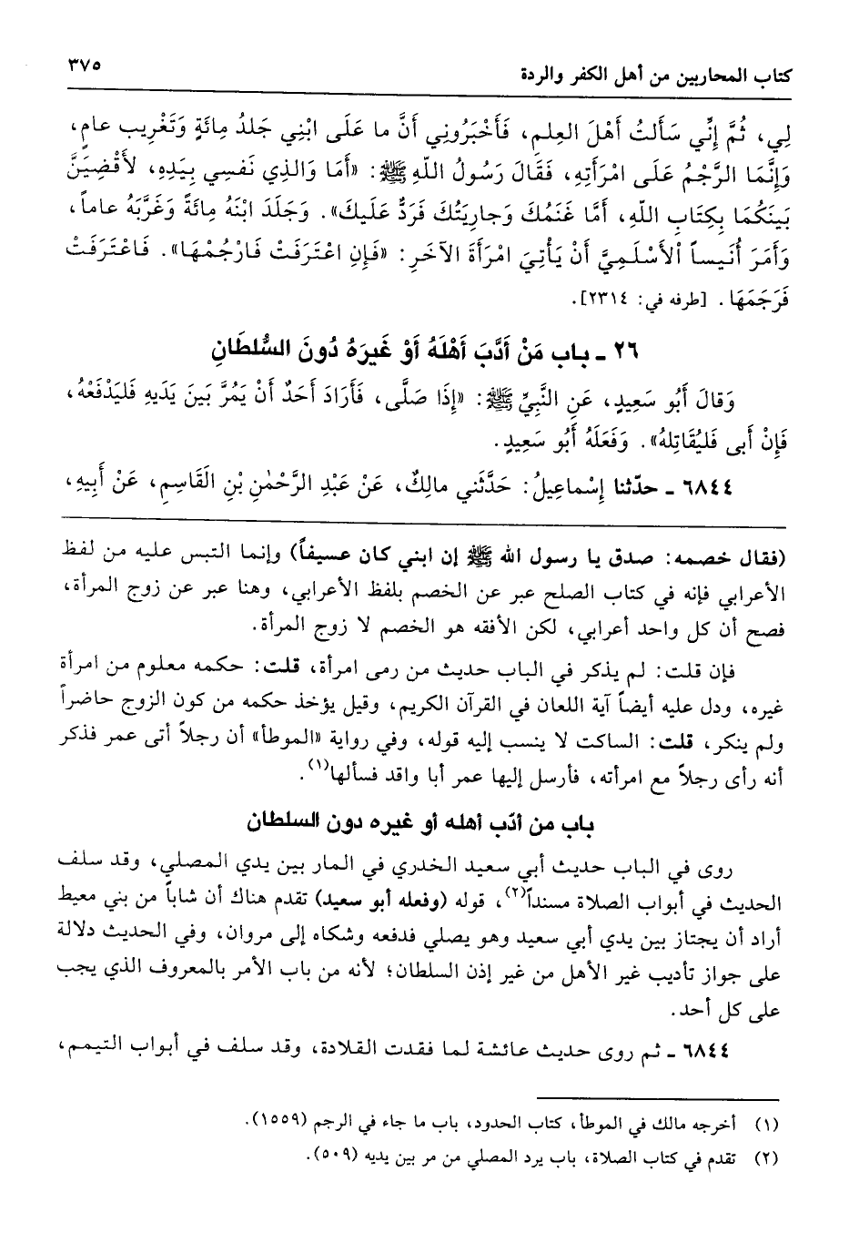 26 - باب مَنْ أَدَّبَ أَهْلَهُ أَوْ غَيْرَهُ دُونَ السُّلْطَانِ