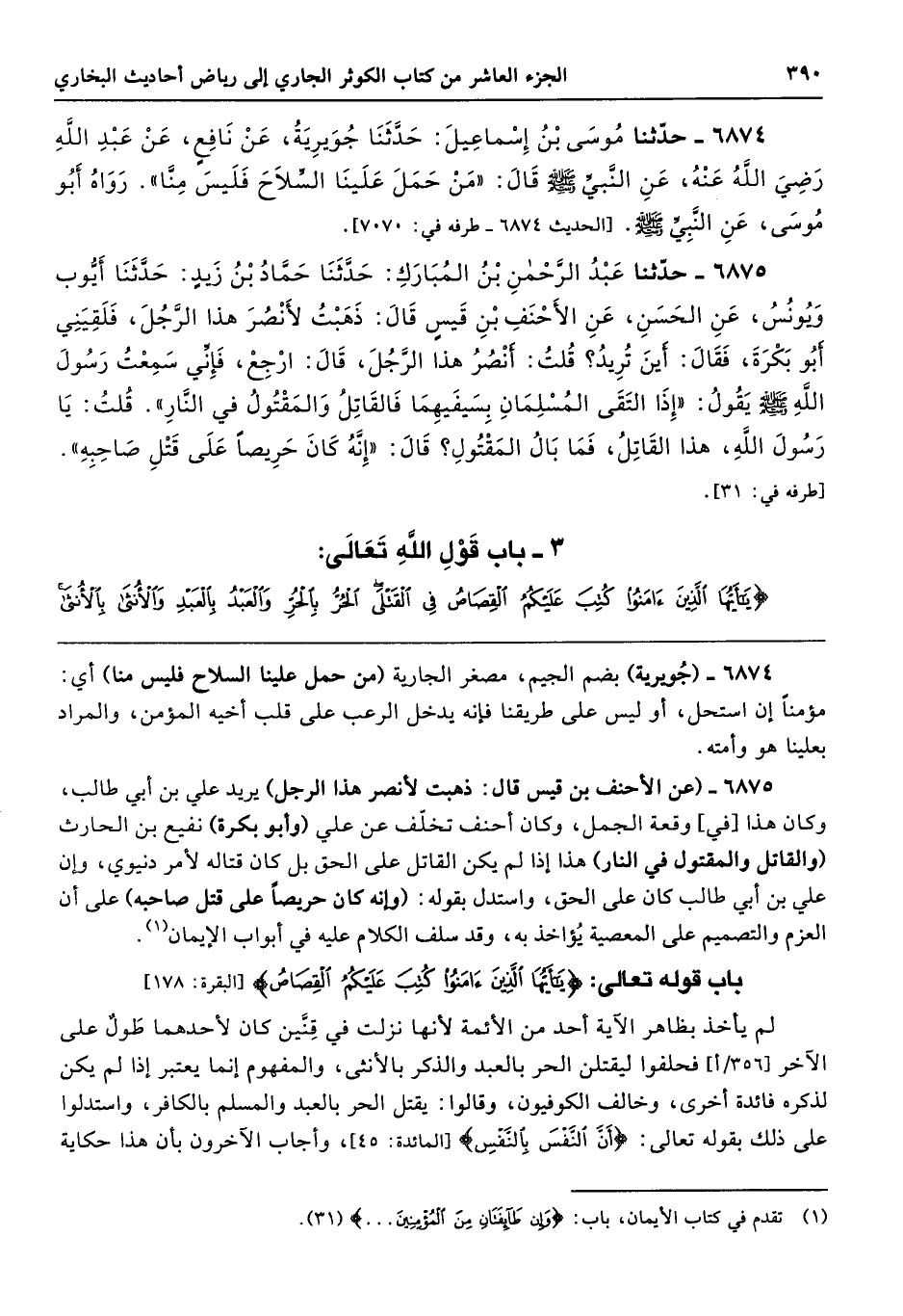 باب قوله تعالى: {يَاأَيُّهَا الَّذِينَ آمَنُوا كُتِبَ عَلَيْكُمُ الْقِصَاصُ} [البقرة: 178]