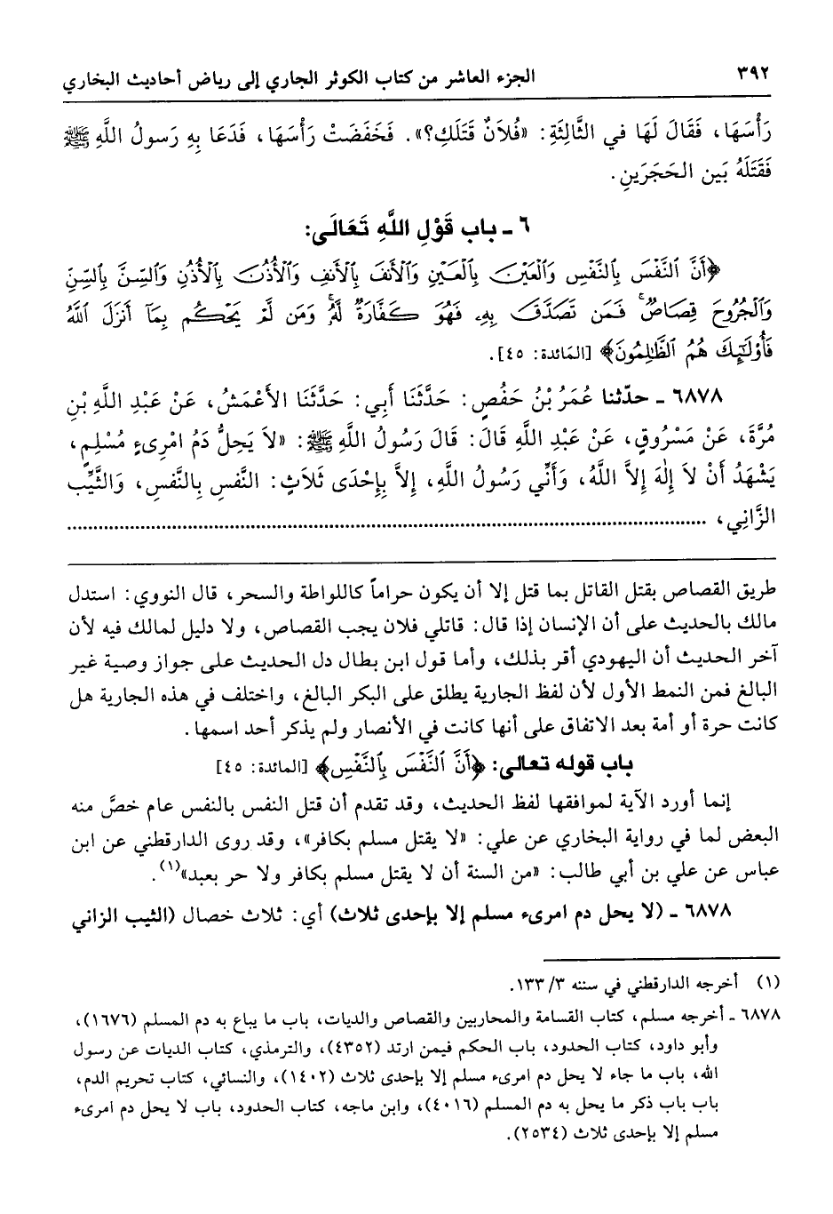 باب قوله تعالى: {أَنَّ النَّفْسَ بِالنَّفْسِ} [المائدة: 45]