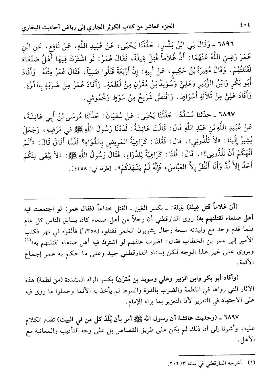 6897 - (وحديث عائشة أن رسول الله - صلى الله عليه وسلم - أمر بأن يُلَدّ كل من في البيت) تقدم الكلام عليه، وأشرنا إلى أن ذلك لم يكن على طريق القصاص بل على وجه التأديب والمعاتبة مع الأهل.