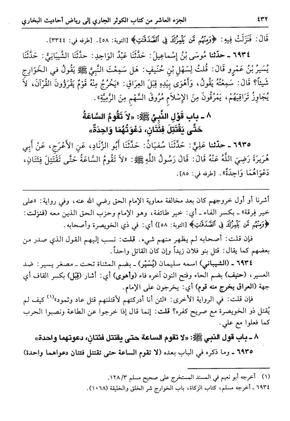 6935 - وما ذكره في الباب بعده (لا تقوم الساعة حتى تقتتل فئتان دعواهما واحدة)