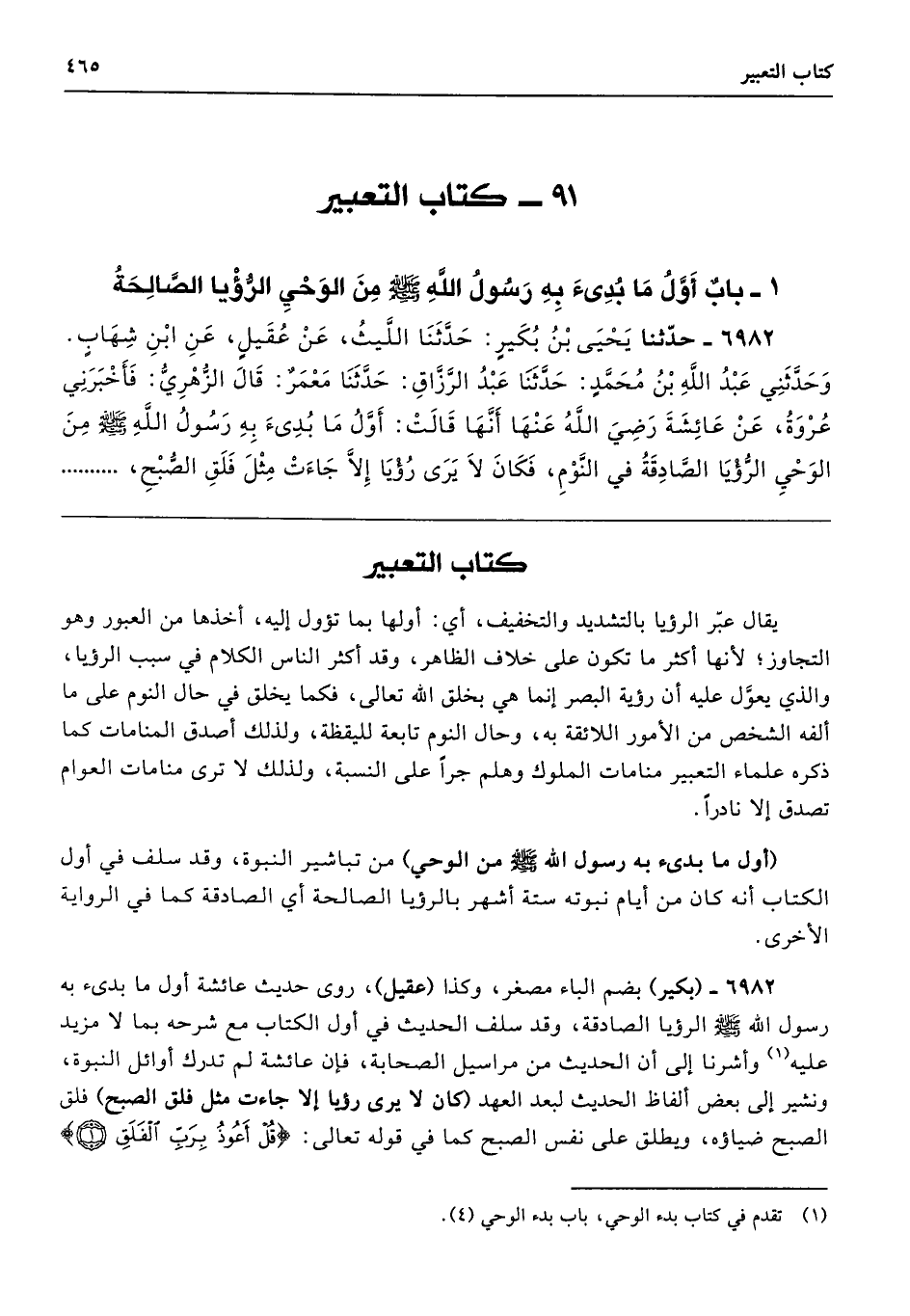 1 - باب أَوَّلُ مَا بُدِئَ بِهِ رَسُولُ اللَّهِ - صلى الله عليه وسلم - مِنَ الْوَحْىِ الرُّؤْيَا الصَّالِحَةُ