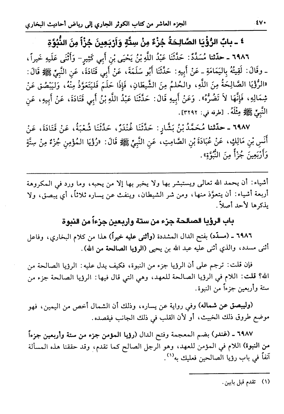 6986 - (مسدّد) بفتح الدال المشددة (وأثنى عليه خيرًا) هذا من كلام البخاري، وفاعل أثنى مسدد، والذي أثنى عليه عبد الله بن يحيى (الرؤيا الصالحة من الله).