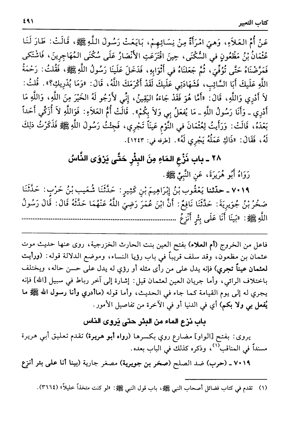 7019 - حَدَّثَنَا يَعْقُوبُ بْنُ إِبْرَاهِيمَ بْنِ كَثِيرٍ حَدَّثَنَا شُعَيْبُ بْنُ حَرْبٍ حَدَّثَنَا صَخْرُ بْنُ جُوَيْرِيَةَ حَدَّثَنَا نَافِعٌ أَنَّ ابْنَ عُمَرَ - رضى الله عنهما - حَدَّثَهُ قَالَ قَالَ رَسُولُ اللَّهِ - صلى الله عليه وسلم - «بَيْنَا أَنَا عَلَى بِئْرٍ أَنْزِعُ