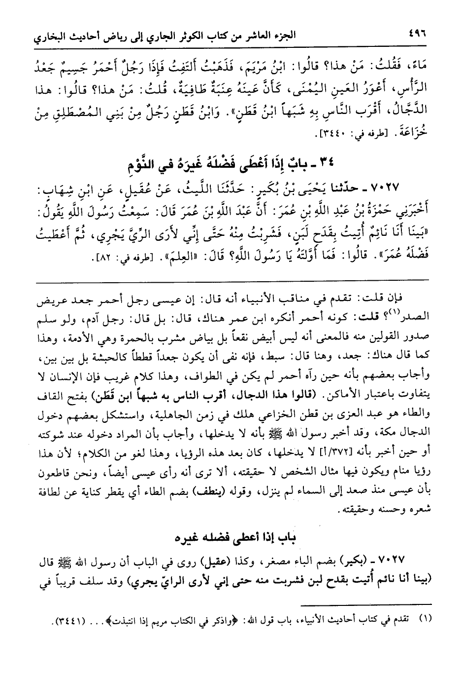 34 - باب إِذَا أَعْطَى فَضْلَهُ غَيْرَهُ فِي النَّوْمِ
