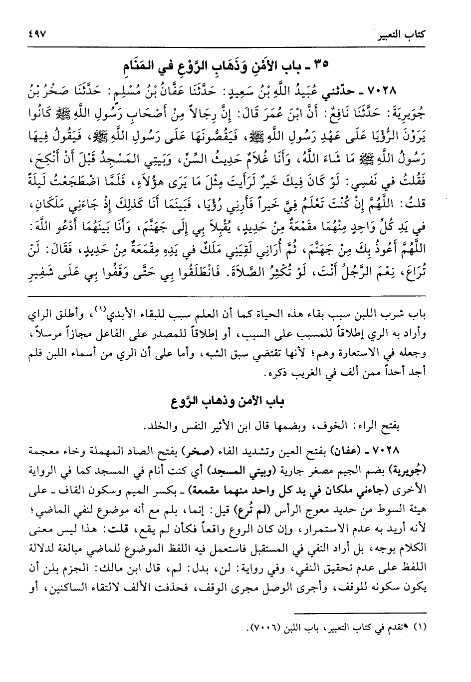 35 - باب الأَمْنِ وَذَهَابِ الرَّوْعِ فِي الْمَنَامِ