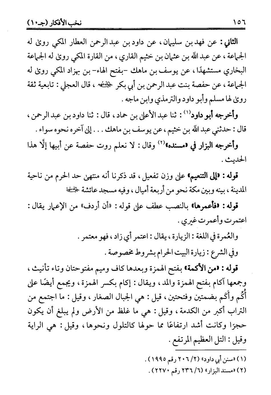 الثاني: عن فهد بن سليمان، عن داود بن عبد الرحمن العطار المكي روى له الجماعة، عن عبد الله بن عثمان بن خثيم القاري، من القارة المكي روى له المجماعة البخاري مستشهدًا، عن يوسف بن ماهك -بفتح الهاء- بن بهزاد المكي روى له الجماعة، عن حفصة بنت عبد الرحمن بن أبي بكر -رضي الله عنهم-، قال العجلي: تابعية ثقة روى لها مسلم وأبو داود والترمذي وابن ماجه.