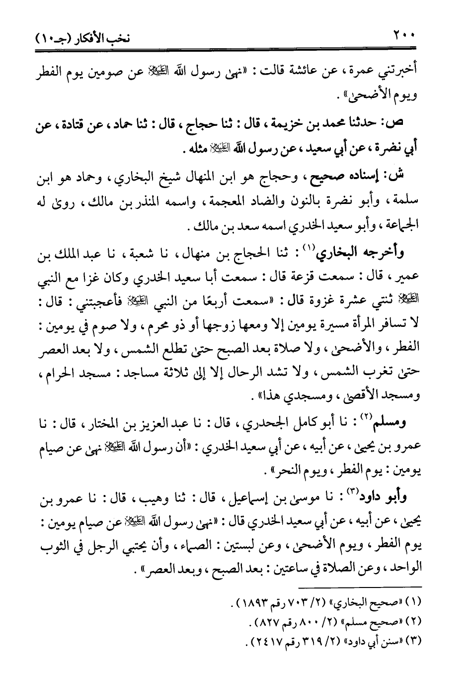 ش: إسناده صحيح، وحجاج هو ابن المنهال شيخ البخاري، وحماد هو ابن سلمة، وأبو نضرة بالنون والضاد المعجمة، واسمه المنذر بن مالك، روى له الجماعة، وأبو سعيد الخدري اسمه سعد بن مالك.