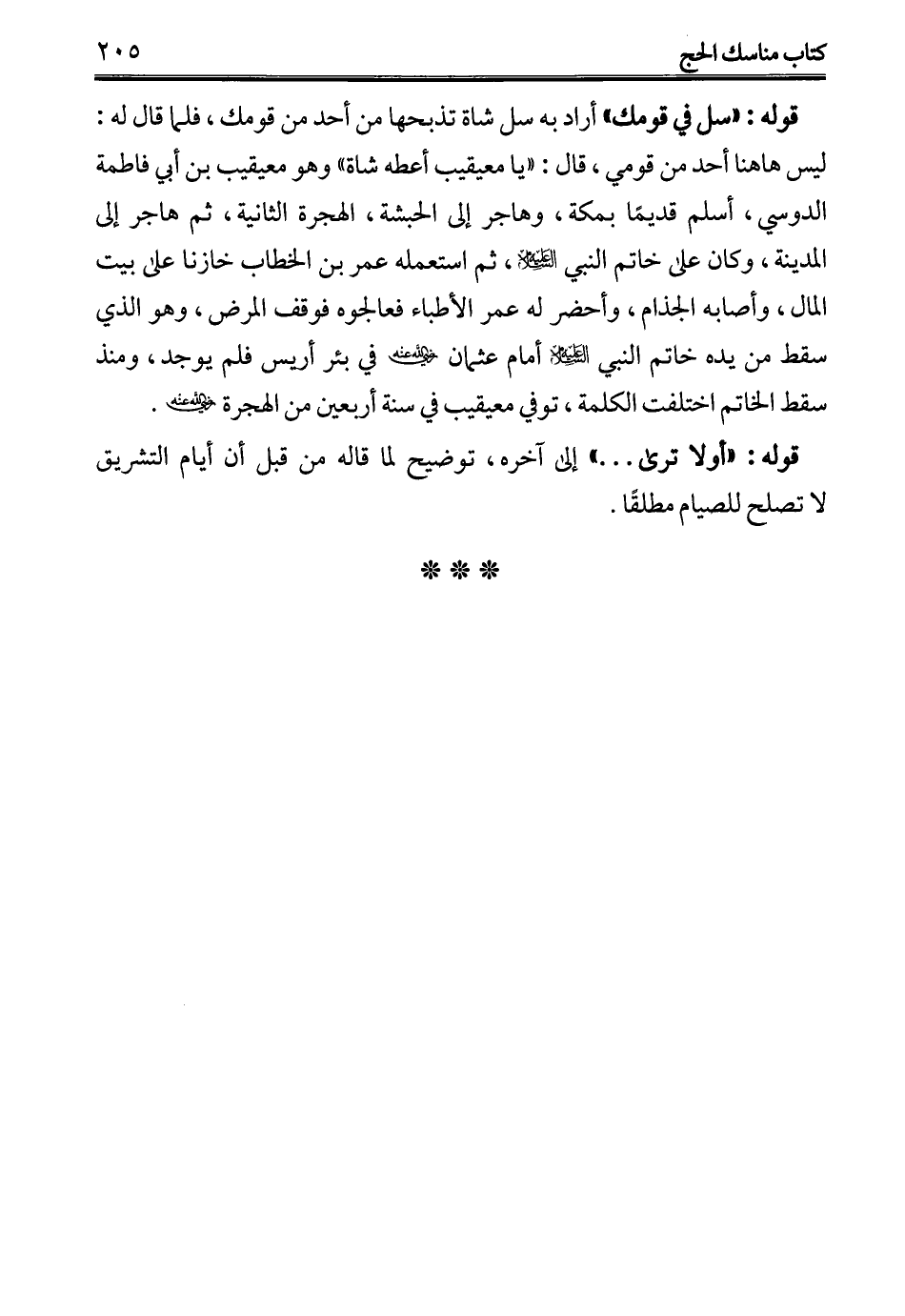 قوله: "سل في قومك" أراد به سل شاة تذبحها من أحد من قومك، فلما قال له: ليس ها هنا أحد من قومي، قال: "يا معيقيب أعطه شاة" وهو معيقيب بن أبي فاطمة الدوسي، أسلم قديمًا بمكة، وهاجر إلى الحبشة، الهجرة الثانية، ثم هاجر إلى المدينة، وكان على خاتم النبي -عليه السلام-، ثم استعمله عمر بن الخطاب خازنا على بيت المال، وأصابه الجذام، وأحضر له عمر الأطباء فعالجوه فوقف المرض، وهو الذي سقط من يده خاتم النبي -عليه السلام- أمام عثمان -رضي الله عنه- في بئر أريس فلم يوجد، ومنذ سقط الخاتم اختلفت الكلمة، توفي معيقيب في سنة أربعين من الهجرة -رضي الله عنه-.