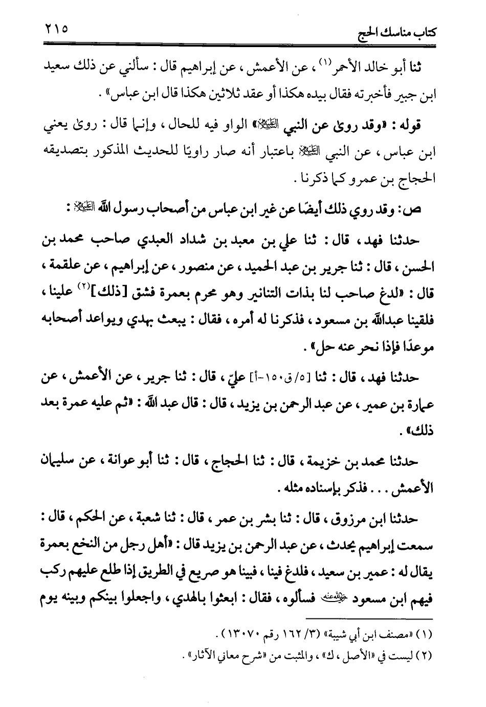 (¬1) "مصنف ابن أبي شيبة" (3/ 162 رقم 13070).