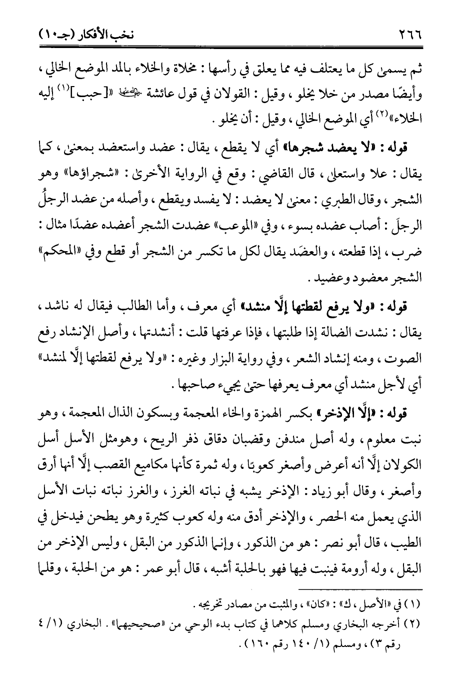 قوله: "لا يعضد شجرها" أي لا يقطع، يقال: عضد واستعضد بمعنى، كما يقال: علا واستعلى، قال القاضي: وقع في الرواية الأخرى: "شجراؤها" وهو الشجر، وقال الطبري: معنى لا يعضد: لا يفسد ويقطع، وأصله من عضد الرجلُ الرجلَ: أصاب عضده بسوء، وفي "الموعب" عضدت الشجر أعضده عضدًا مثال: ضرب، إذا قطعته، والعضَد يقال لكل ما تكسر من الشجر أو قطع وفي "المحكم" الشجر معضود وعضيد.