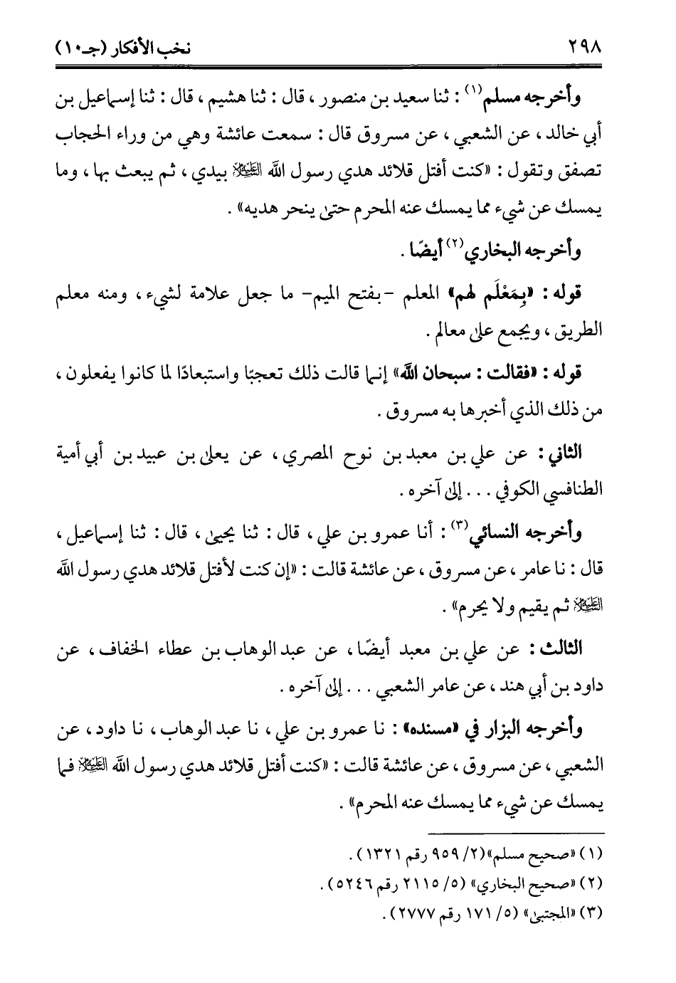 وأخرجه البزار في "مسنده": نا عمرو بن علي، نا عبد الوهاب، نا داود، عن الشعبي، عن مسروق، عن عائشة قالت: "كنت أفتل قلائد هدي رسول الله -عليه السلام- فما يمسك عن شيء مما يمسك عنه المحرم".