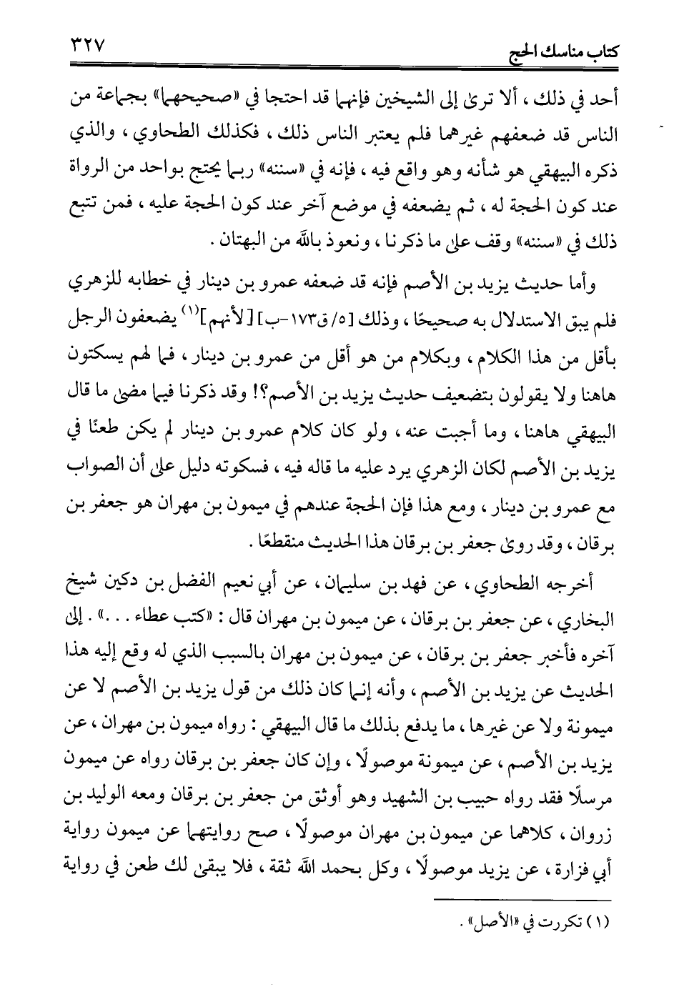 أخرجه الطحاوي، عن فهد بن سليمان، عن أبي نعيم الفضل بن دكين شيخ البخاري، عن جعفر بن برقان، عن ميمون بن مهران قال: "كتب عطاء ... ". إلى آخره فأخبر جعفر بن برقان، عن ميمون بن مهران بالسبب الذي له وقع إليه هذا الحديث عن يزيد بن الأصم، وأنه إنما كان ذلك من قول يزيد بن الأصم لا عن ميمونة ولا عن غيرها، ما يدفع بذلك ما قال البيهقي: رواه ميمون بن مهران، عن يزيد بن الأصم، عن ميمونة موصولاً، وإن كان جعفر بن برقان رواه عن ميمون مرسلًا فقد رواه حبيب بن الشهيد وهو أوثق من جعفر بن برقان ومعه الوليد بن زروان، كلاهما عن ميمون بن مهران موصولاً، صح روايتهما عن ميمون رواية أبي فزارة، عن يزيد موصولاً، وكل بحمد الله ثقة، فلا يبقى لك طعن في رواية
