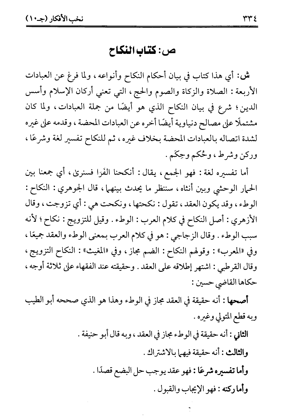 ش: أي هذا كتاب في بيان أحكام النكاح وأنواعه، ولما فرغ عن العبادات الأربعة: الصلاة والزكاة والصوم والحج، التي تعني أركان الإِسلام وأسس الدين؛ شرع في بيان النكاح الذي هو أيضًا من جملة العبادات، ولما كان مشتملًا على مصالح دنياوية أيضًا أخره عن العبادات المحضة، وقدمه على غيره لشدة اتصاله بالعبادات المحضة بخلاف غيره، ثم للنكاح تفسير لغة وشرعًا، وركن وشرط، وحُكم وحِكَم.