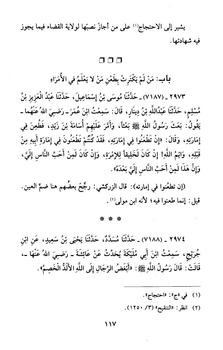 (إن تطعُنوا في إمارته): قال الزركشي: رجَّحَ بعضُهم هنا ضمَّ العين. قيل: إنما طعنوا فيه؛ لأنه ابن مولى (¬2).
