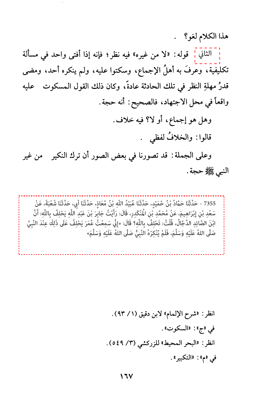 وعلى الجملة: قد تصورنا في بعض الصور أن ترك النكير (¬4) من غير النبي - صلى الله عليه وسلم - حجة.