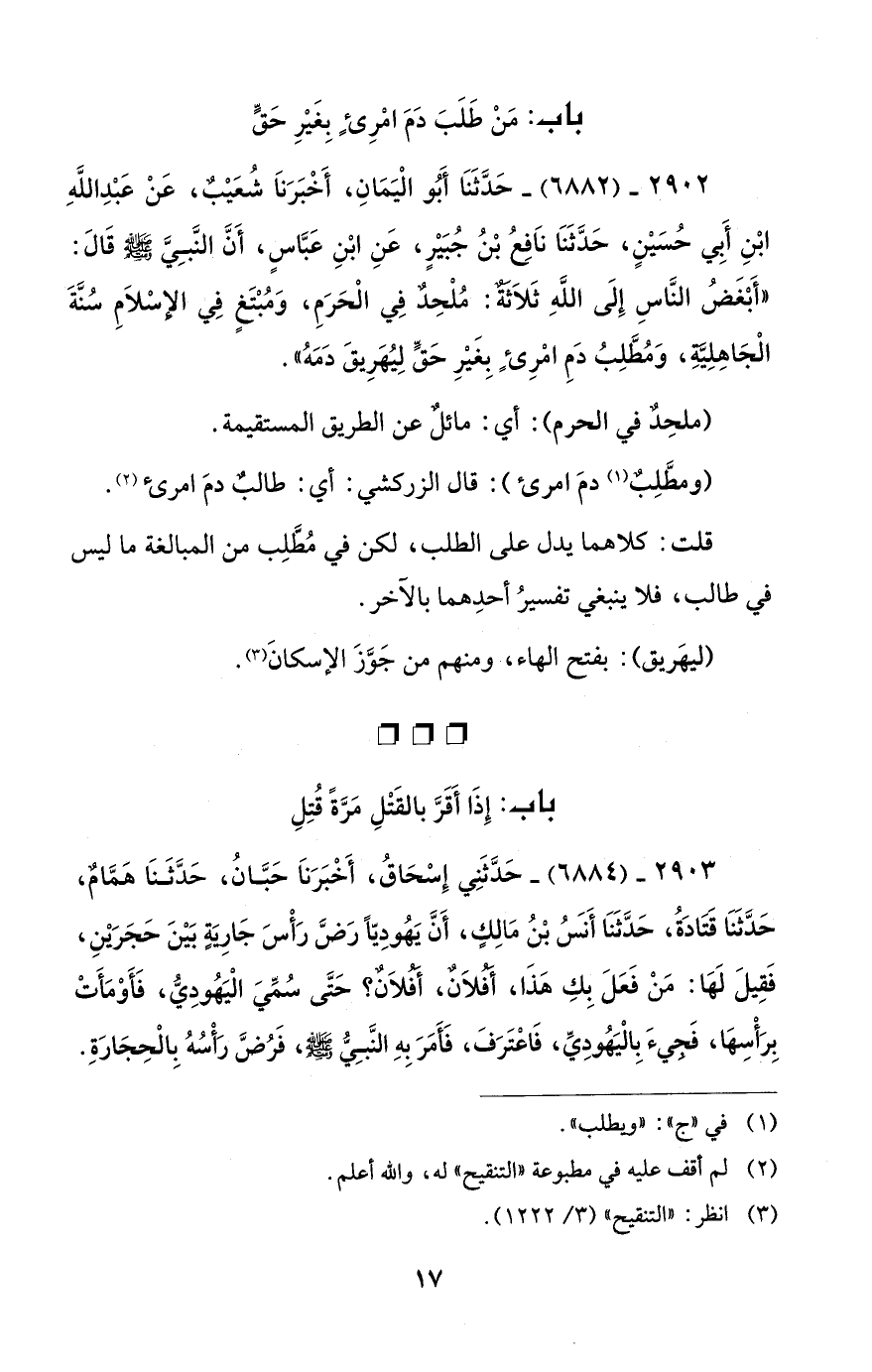 باب: مَنْ طَلَبَ دَمَ امْرِئٍ بِغَيْرِ حَقٍّ