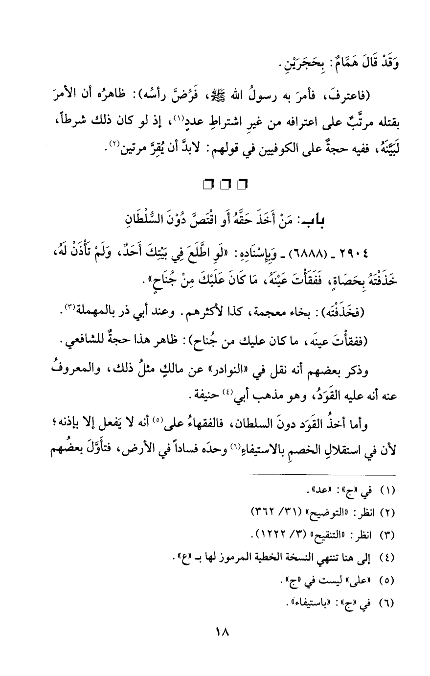 باب: مَنْ أَخَذَ حَقَّهُ أَو اقْتَصَّ دُوْد السُّلْطَانِ