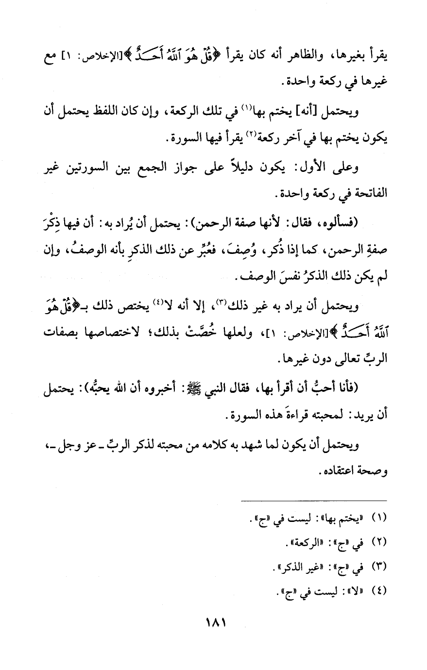 ويحتمل أن يراد به غير ذلك (¬3)، إلا أنه لا (¬4) يختص ذلك بـ {قُلْ هُوَ اللَّهُ أَحَدٌ} [الإخلاص: 1] ولعلها خُصَّتْ بذلك؛ لاختصاصها بصفات الربِّ تعالى دون غيرها.