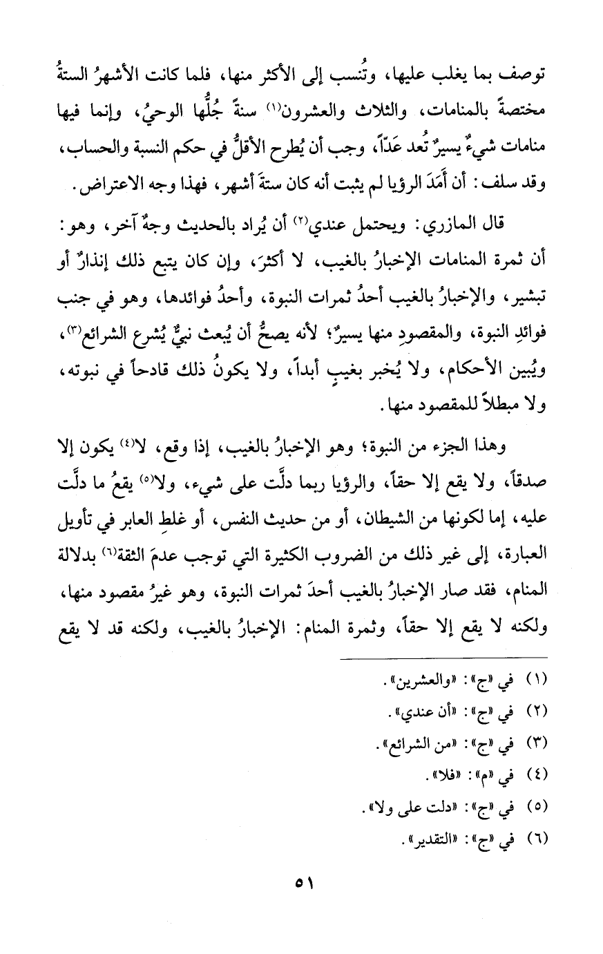 توصف بما يغلب عليها، وتُنسب إلى الأكثر منها، فلما كانت الأشهرُ الستةُ مختصةً بالمنامات، والثلاث والعشرون (¬1) سنةً جُلُّها الوحيُ، وإنما فيها منامات شيءٌ يسيرٌ تُعد عَدّاً، وجب أن يُطرح الأقلُّ في حكم النسبة والحساب، وقد سلف: أن أَمَدَ الرؤيا لم يثبت أنه كان ستةَ أشهر، فهذا وجه الاعتراض.