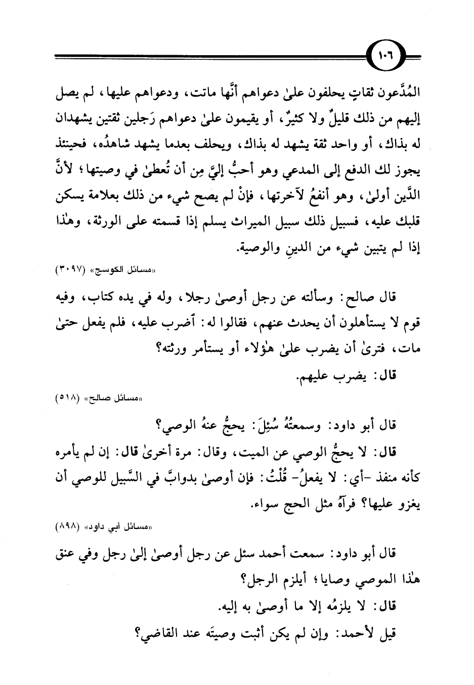 قال صالح: وسألته عن رجل أوصى رجلا، وله في يده كتاب، وفيه قوم لا يستأهلون أن يحدث عنهم، فقالوا له: اضرب عليه، فلم يفعل حتى مات، فترى أن يضرب على هؤلاء أو يستأمر ورثته؟