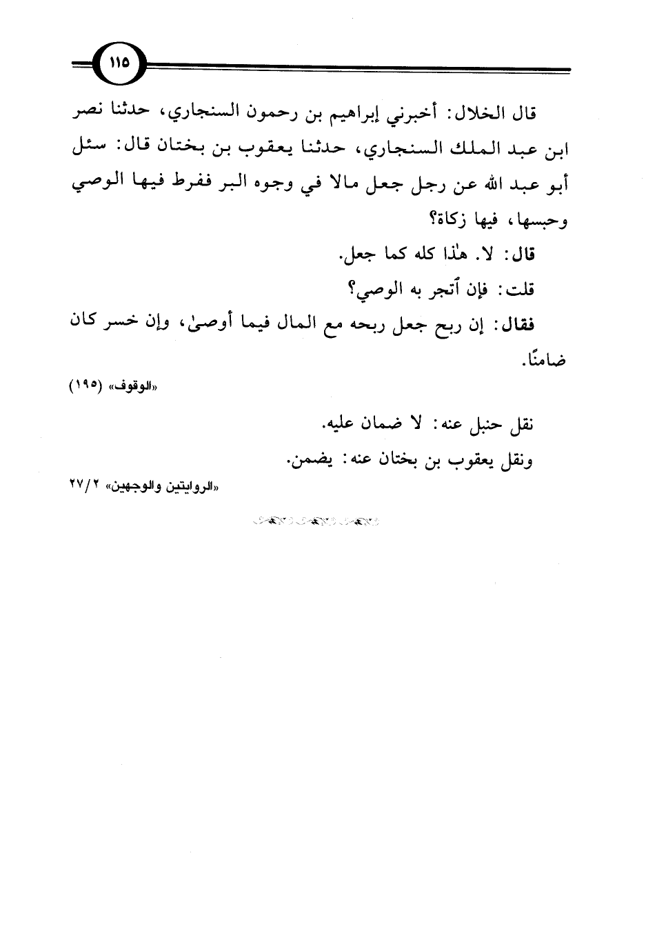 "الروايتين والوجهين" 2/ 27