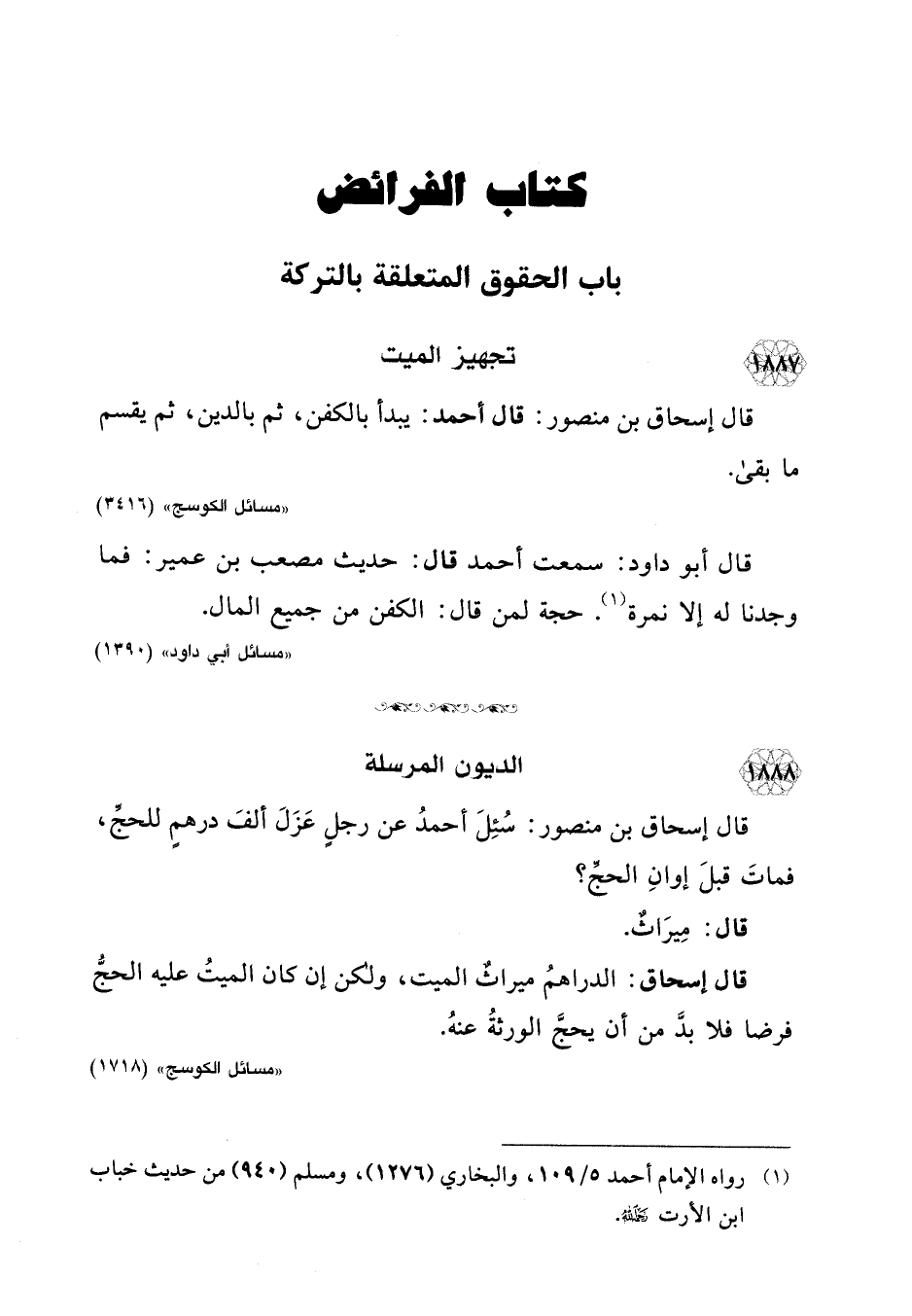 قال إسحاق: الدراهمُ ميراثٌ الميت، ولكن إن كان الميتُ عليه الحجُّ فرضا فلا بدَّ من أن يحجَّ الورثةُ عنهُ.