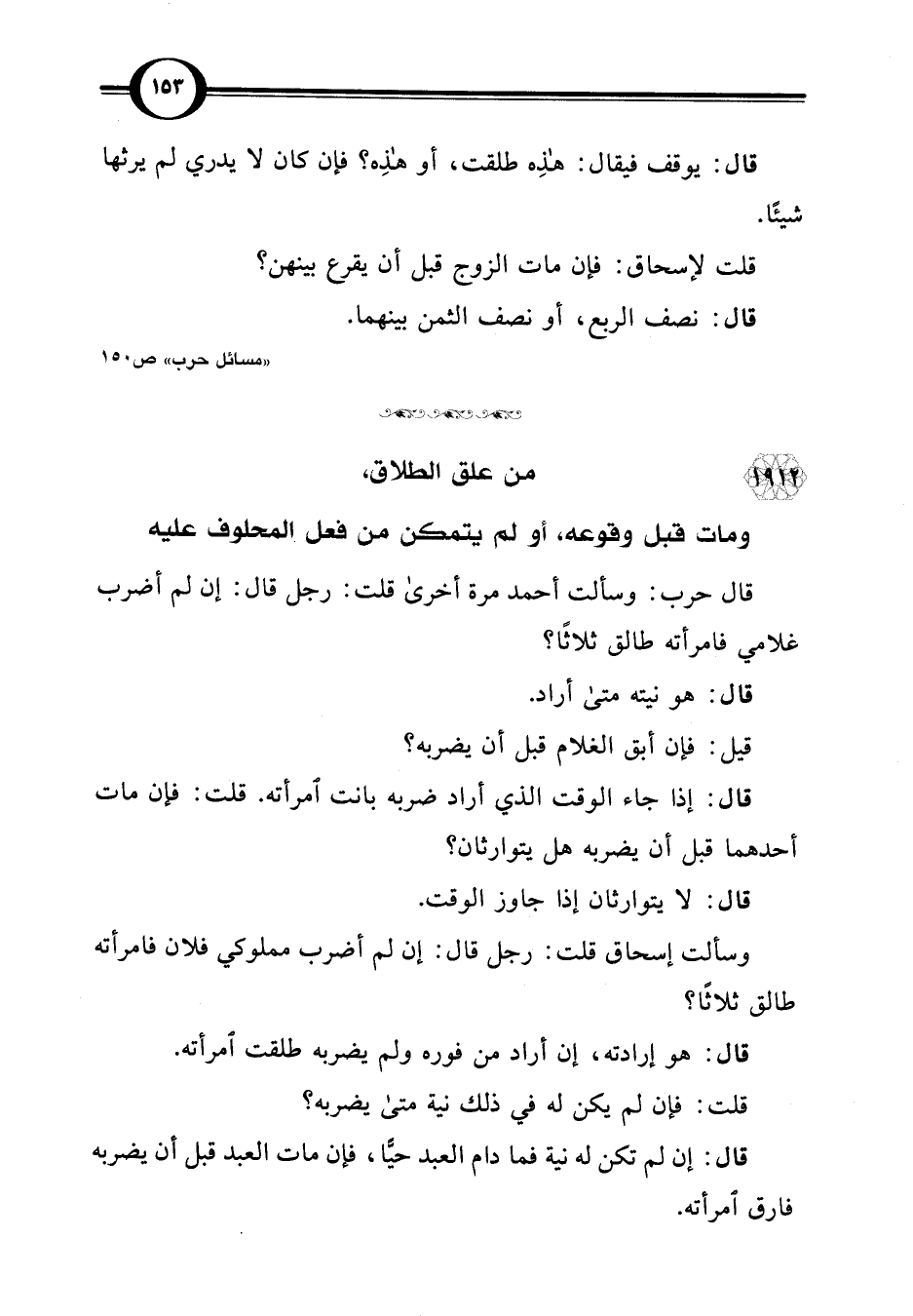 قال حرب: وسألت أحمد مرة أخرى قلت: رجل قال: إن لم أضرب غلامي فامرأته طالق ثلاثًا؟