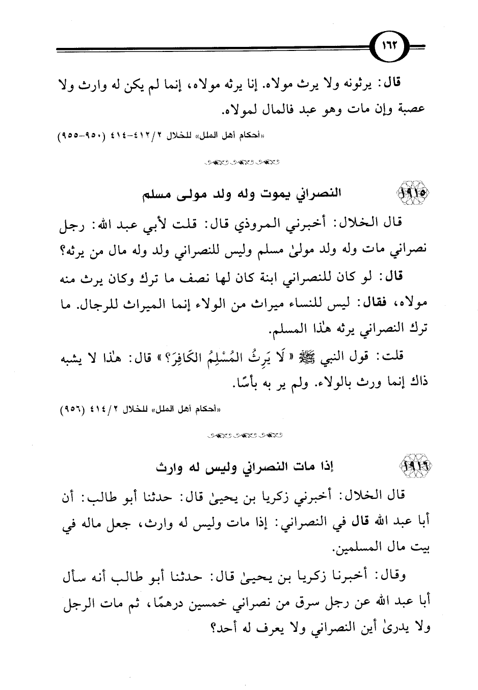 "أحكام أهل الملل" للخلال 2/ 412 - 414 (950 - 955)
