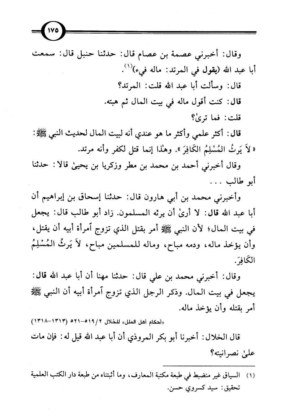 "أحكام أهل الملل" للخلال 2/ 519 - 521 (1313 - 1318)