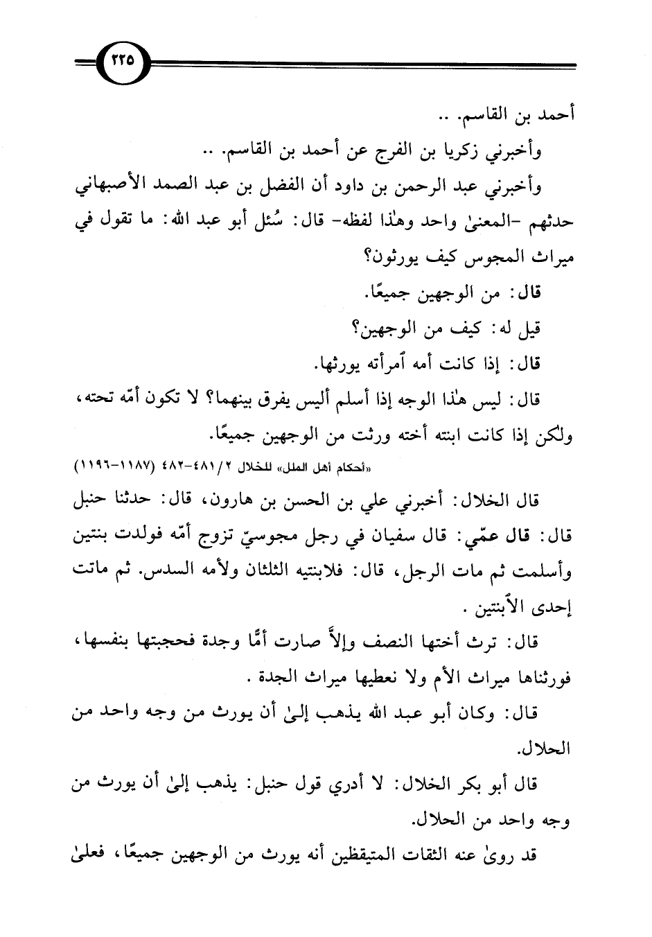 وأخبرني عبد الرحمن بن داود أن الفضل بن عبد الصمد الأصبهاني حدثهم -المعنى واحد وهذا لفظه- قال: سُئل أبو عبد اللَّه: ما تقول في ميراث المجوس كيف يورثون؟