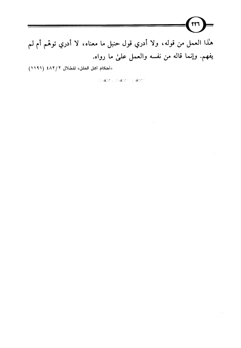 هذا العمل من قوله، ولا أدري قول حنبل ما معناه، لا أدري توهّم أم لم يفهم. وإنما قاله من نفسه والعمل على ما رواه.
