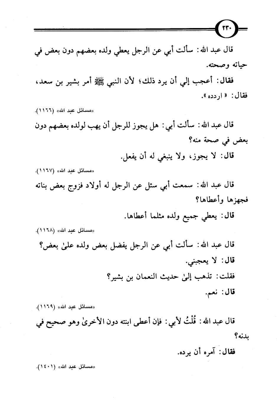"مسائل عبد اللَّه" (1167).