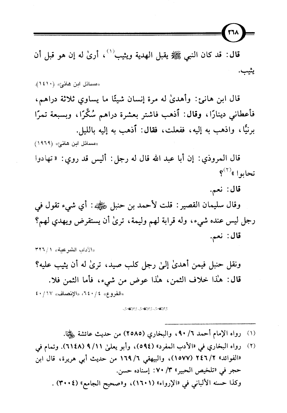 قال المروذي: إن أبا عبد اللَّه قال له رجل: أليس قد روي: "تهادوا تحابوا" (¬2)؟