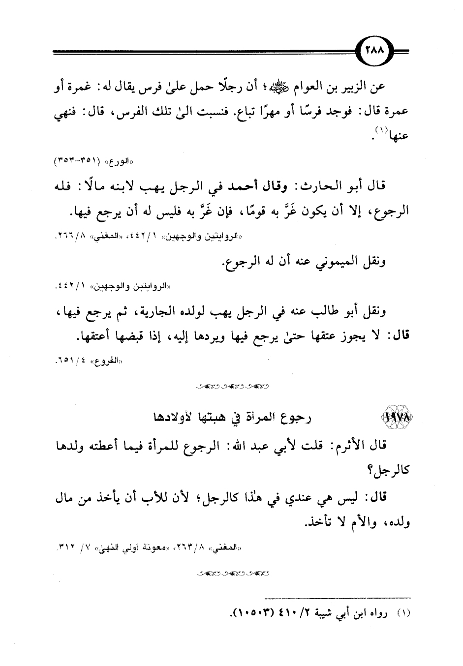 قال الأثرم: قلت لأبي عبد اللَّه: الرجوع للمرأة فيما أعطته ولدها كالرجل؟